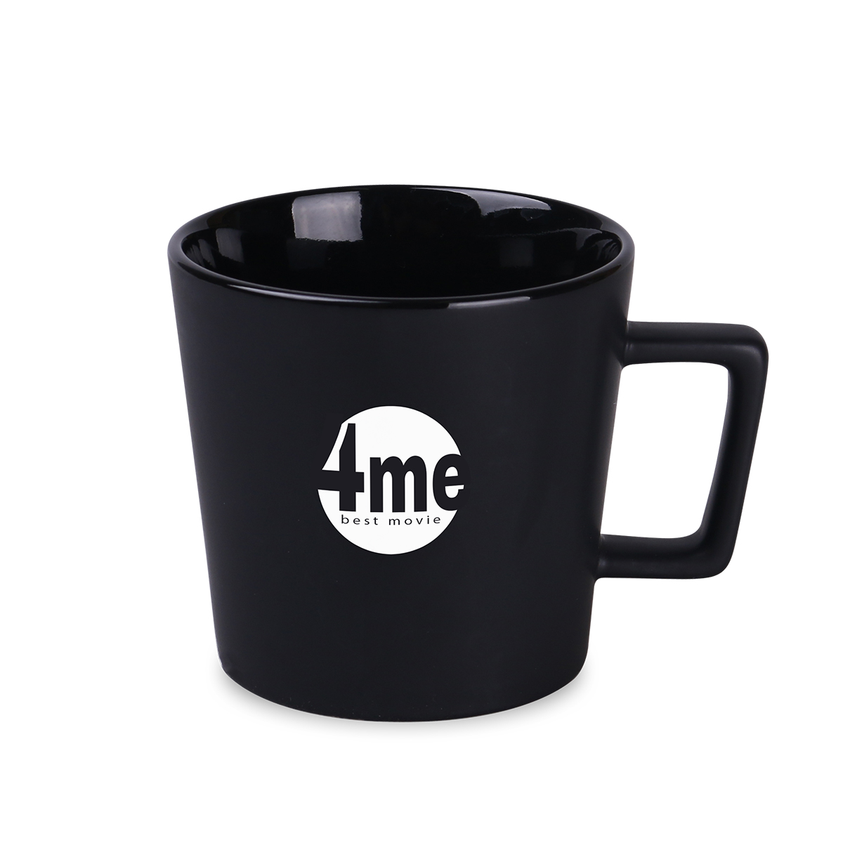 Nowoczesny kubek z czarną matową powierzchnią. Posiada ucho o ciekawym, designerskim kształcie.
