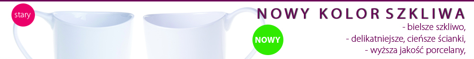Porcelanowy kubek z dużym uchwytem oraz delikatnie pofalowaną krawędzią rantu.