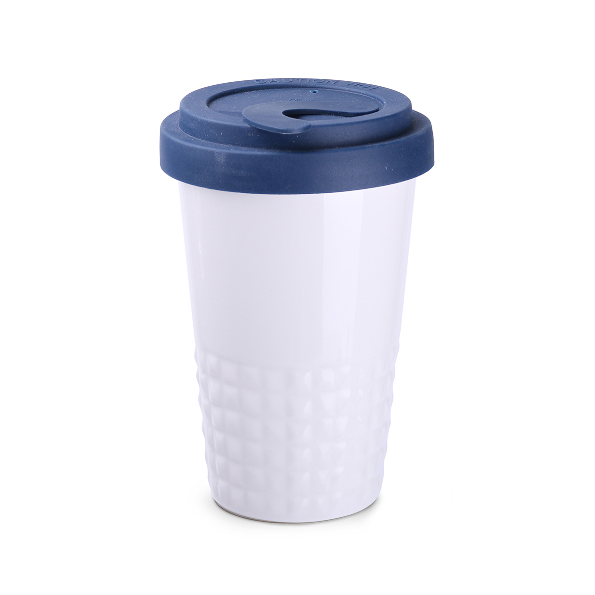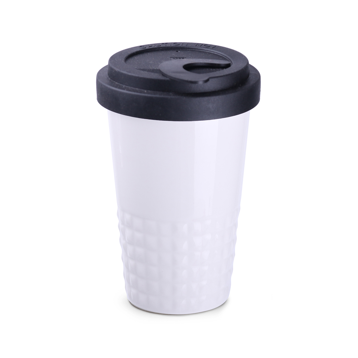 Nowość na rynku ceramiki reklamowej. Subtelne wykończenie dolnej części kubka w formie symetrycznych wypustek. Porcelanowy kubek dwuścienny, zapewniający doskonałą izolację ciepła. Wyjątkowo szczelna przykrywka. Model dla aktywnych. Przykrywka dostępna w następujących kolorach: biały, pomarańczowy 021C, szary Cool Gray 7, granatowy 294C, brązowy 4695C, czarny, różowy 4064C, niebieski 2144C, eucalyptus 5493C, desert sand 2310C